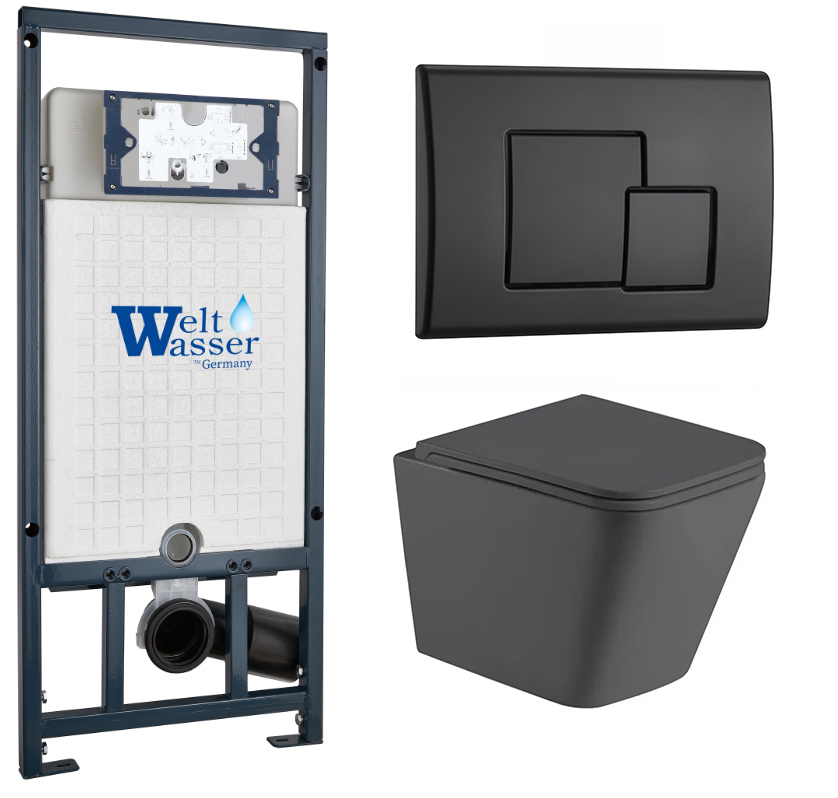 Комплект инсталляции Welt-Wasser MARBERG 507 с клавишей смыва MAR 507 SE MT-BL и унитазом GELBACH 043 MT-GR