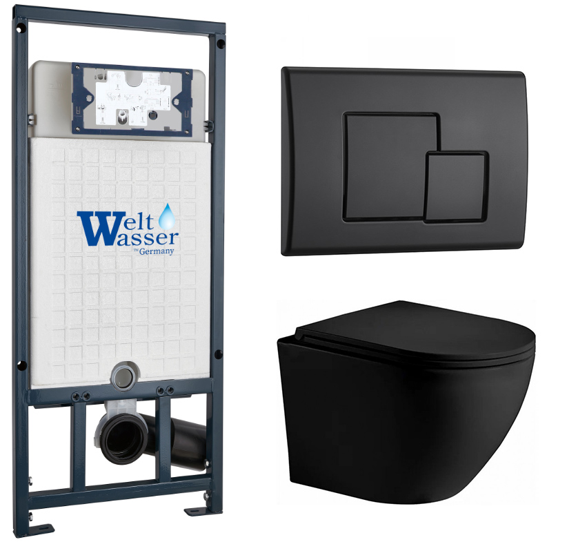 Комплект инсталляции Welt-Wasser MARBERG 507 с клавишей смыва MAR 507 SE MT-BL и унитазом MERZBACH 043 XL MT-B