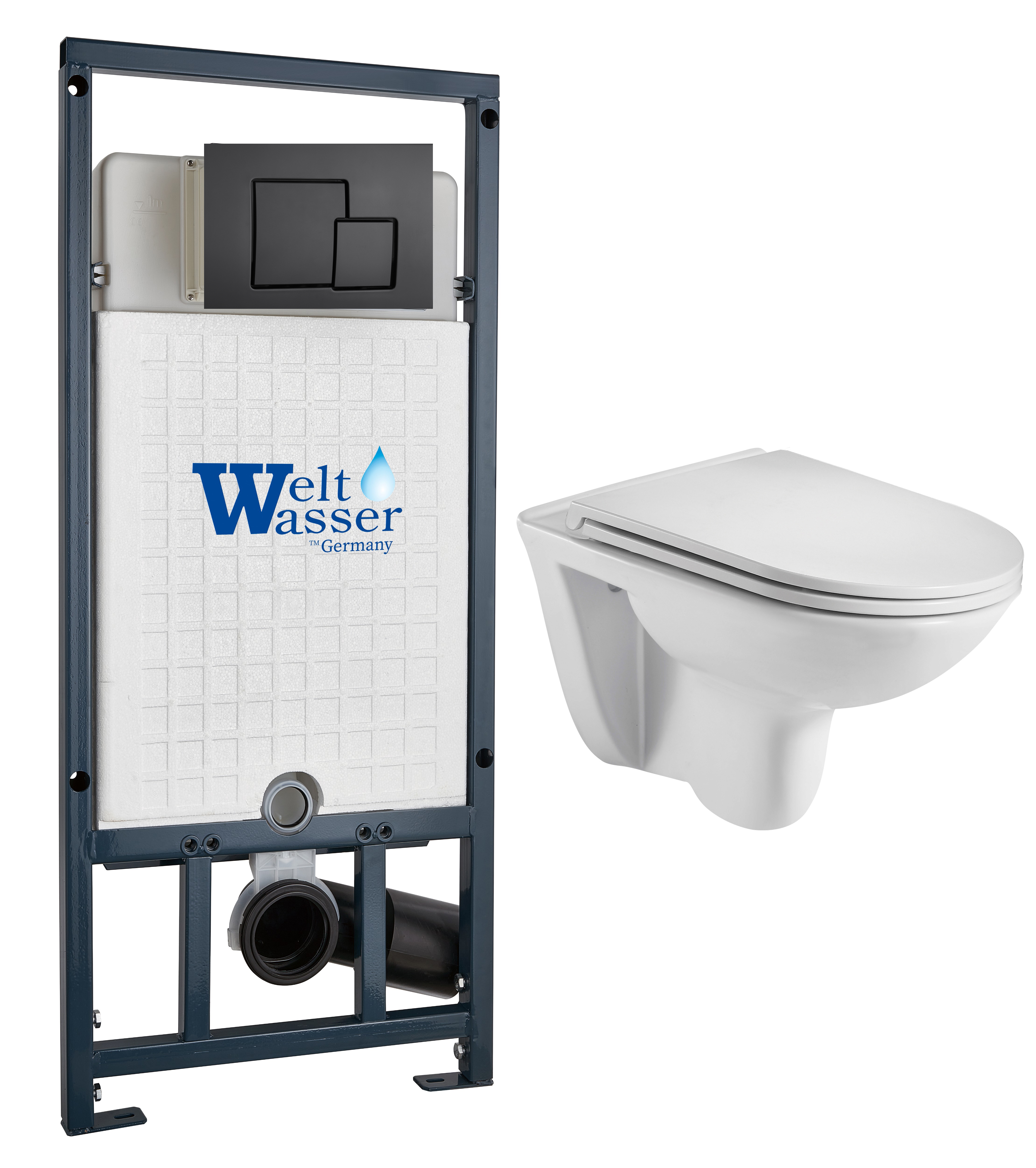 Комплект инсталляции Welt-Wasser MARBERG 507 с унитазом BAARBACH 004 GL-WT и клавишей смыва MAR 507 SE MT-BL черный матовый
