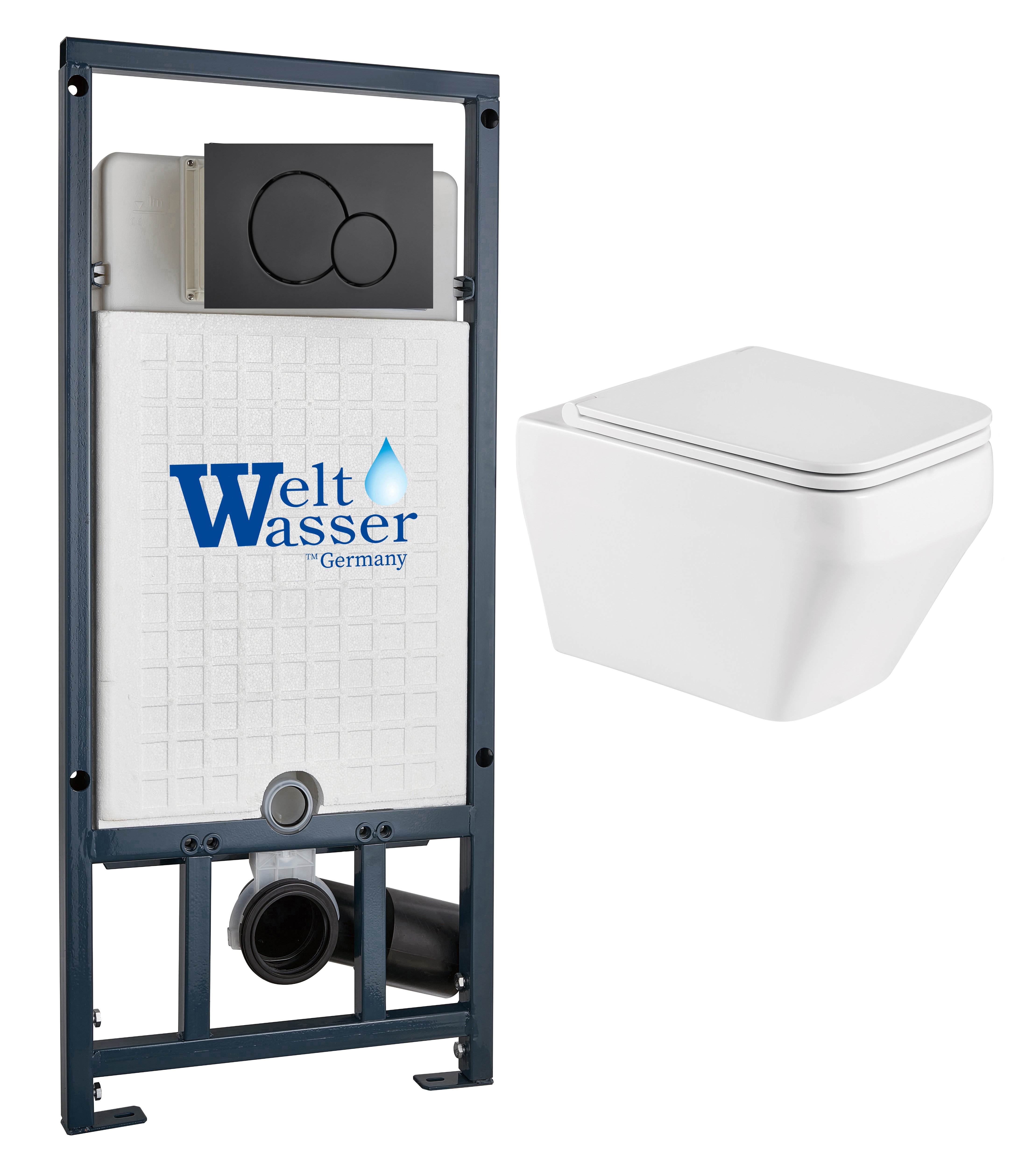 Комплект инсталляции Welt-Wasser MARBERG 507 с унитазом HOFBACH 041 GL-WT и клавишей смыва MAR 507 RD MT-BL черный матовый