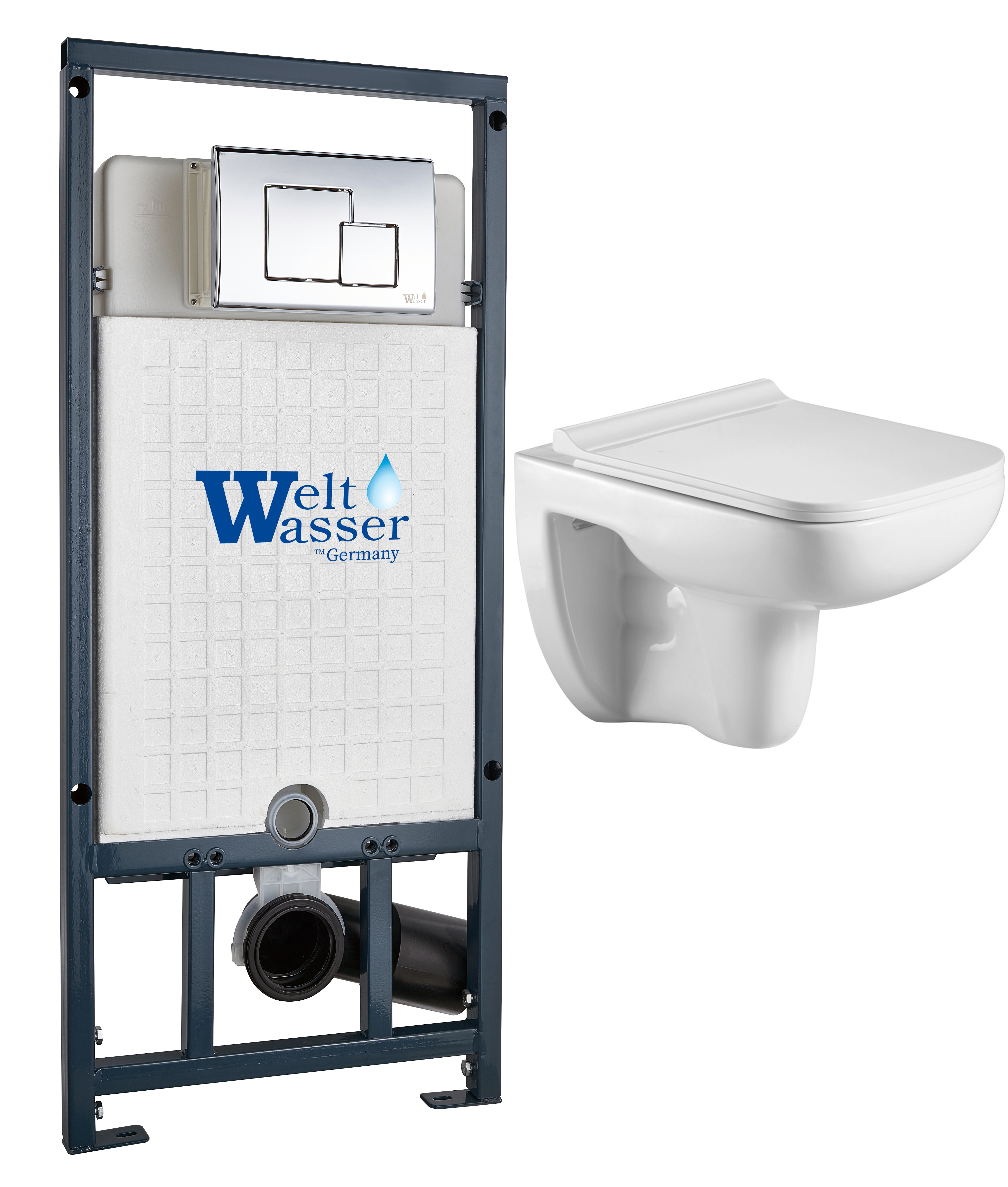 Комплект инсталляции Welt-Wasser MARBERG 507 с унитазом KEHLBACH 004 GL-WT и клавишей смыва MAR 507 SE GL-WT белый глянец