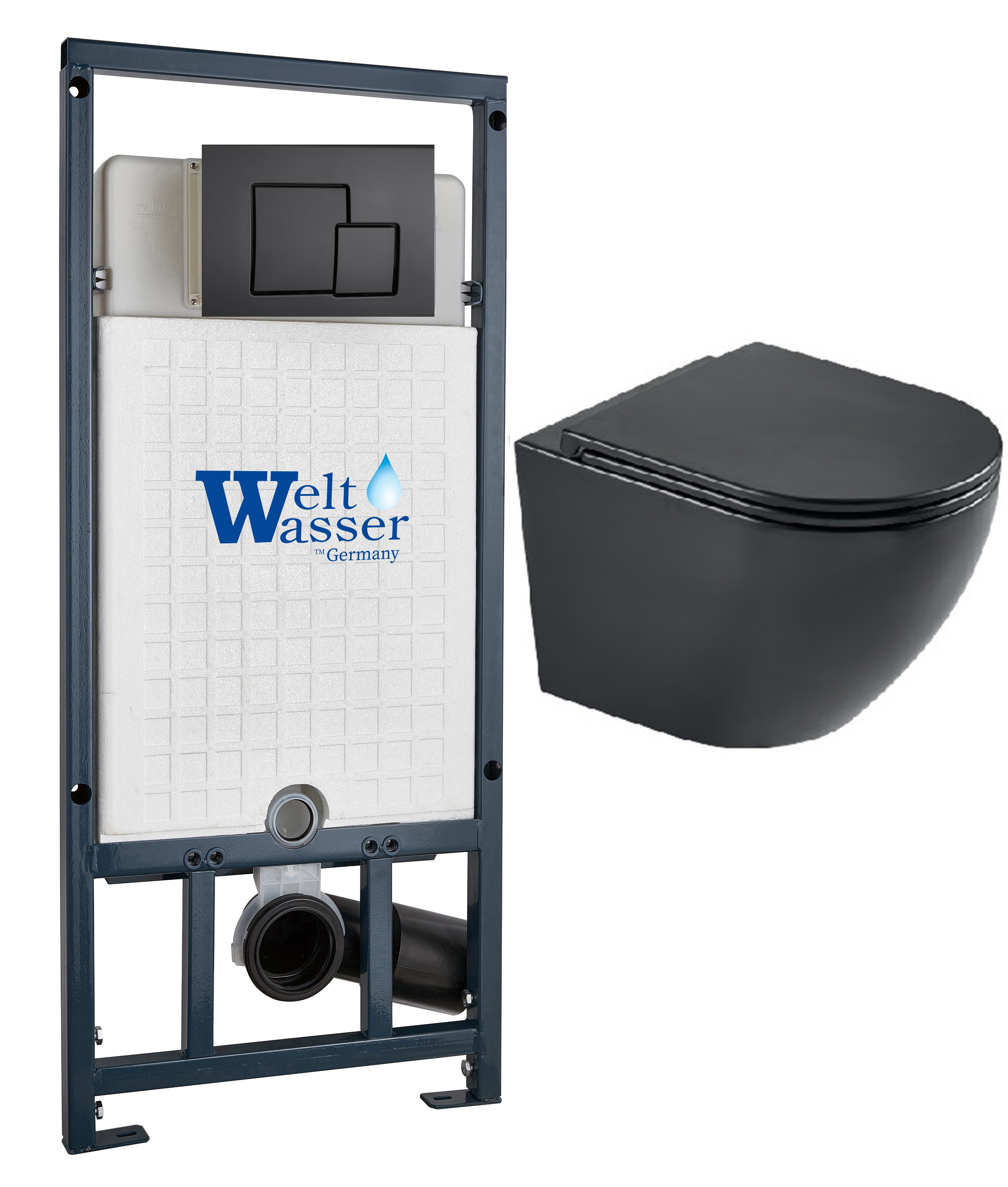 Комплект инсталляции Welt-Wasser MARBERG 507 с унитазом MERZBACH 043 MT-BL и клавишей смыва MAR 507 SE MT-BL черный матовый