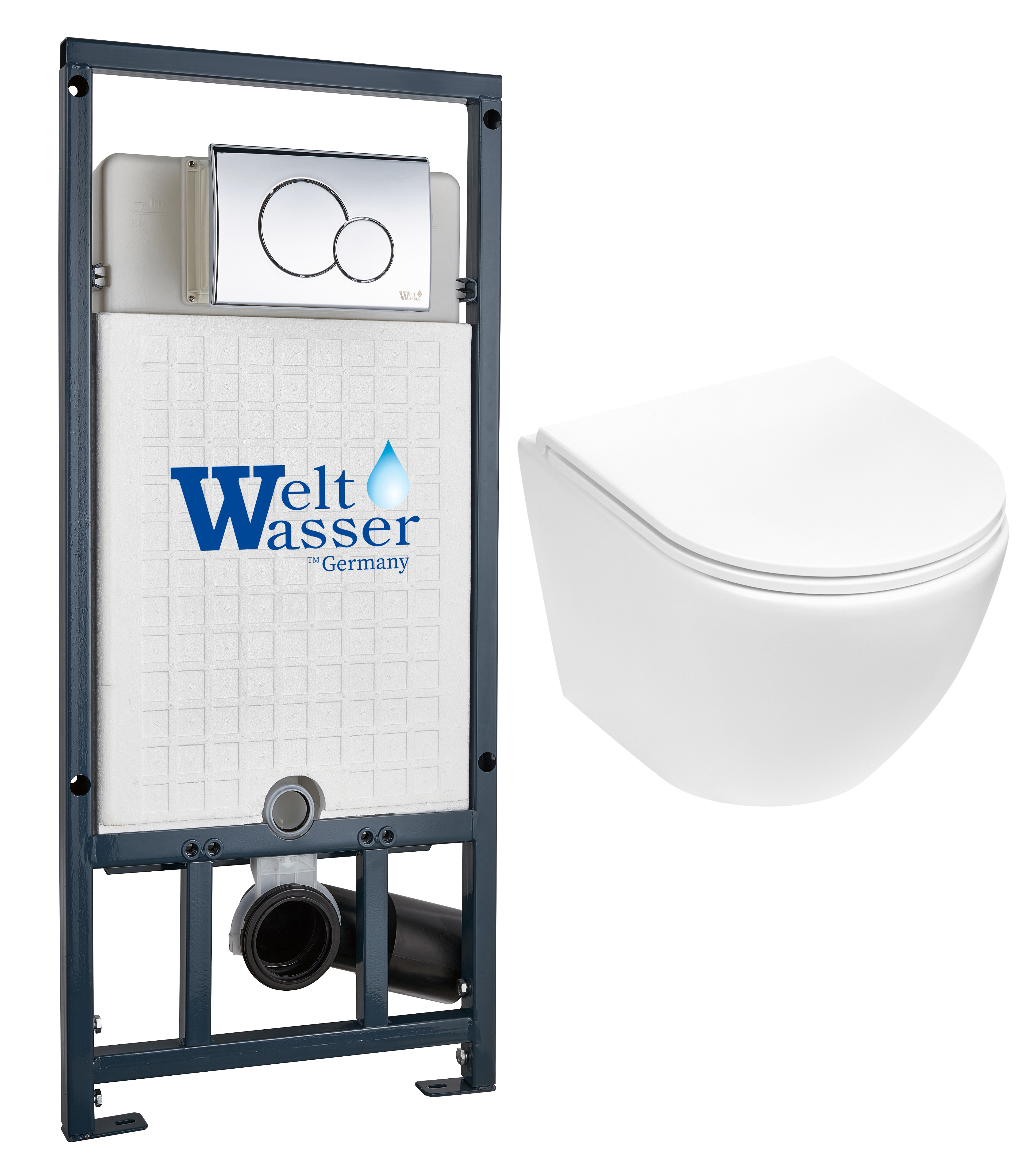 Комплект инсталляции Welt-Wasser MARBERG 507 с унитазом MERZBACH 043 MT-WT и клавишей смыва MAR 507 RD-CR хром