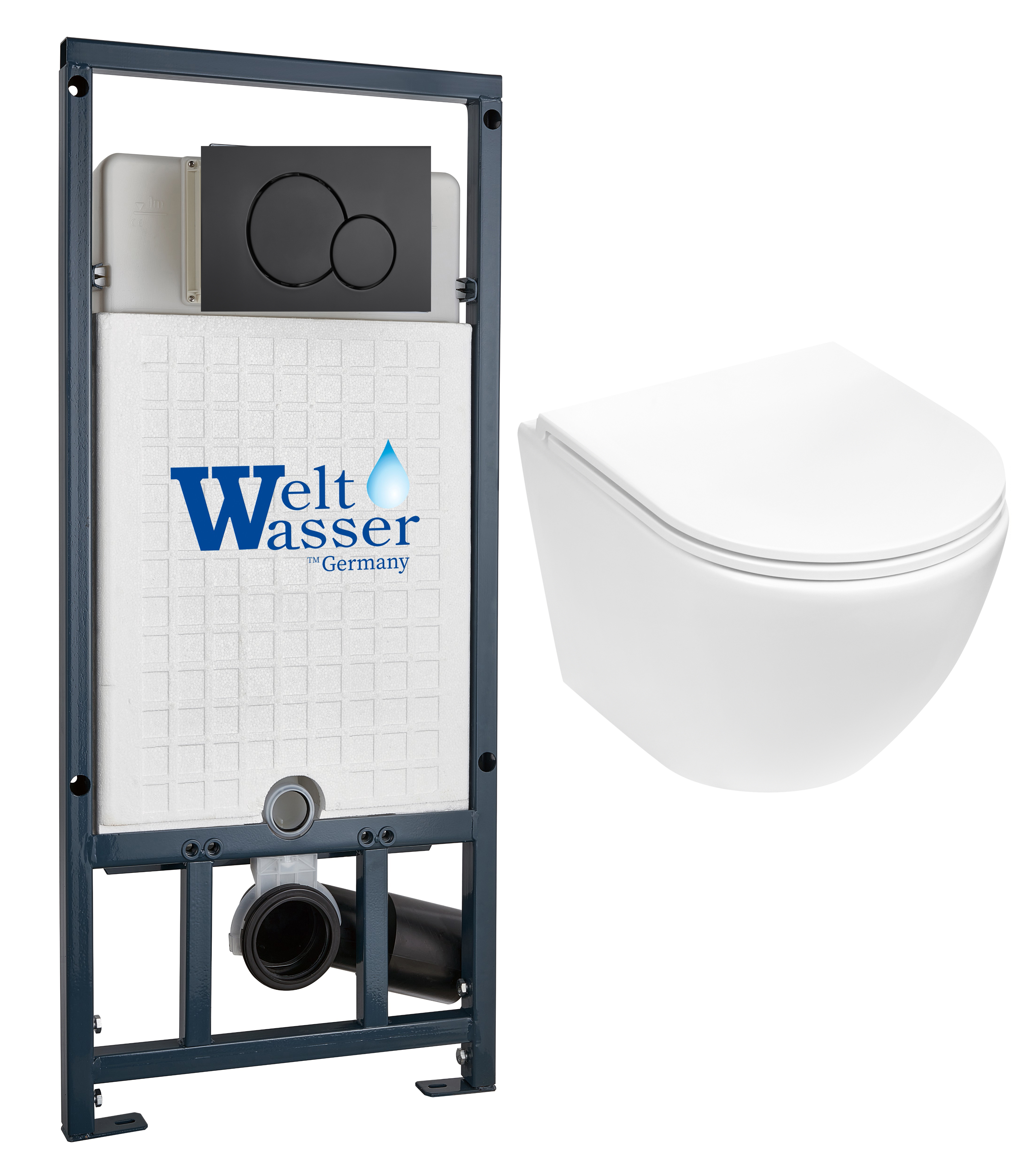 Комплект инсталляции Welt-Wasser MARBERG 507 с унитазом MERZBACH 043 MT-WT и клавишей смыва MAR 507 RD MT-BL черный матовый