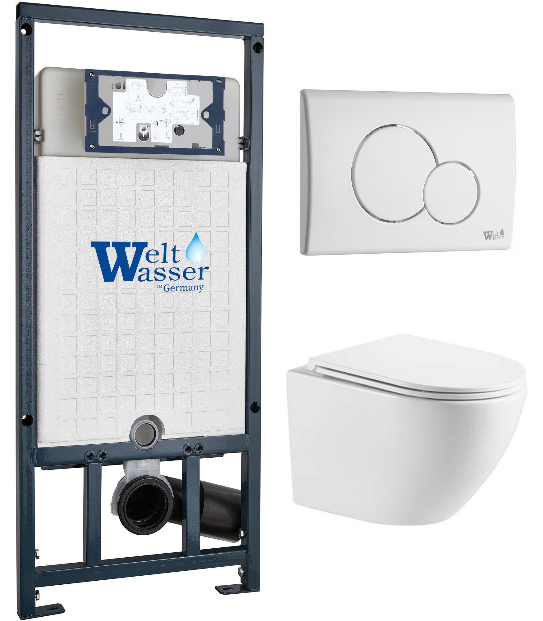 Комплект инсталляции Welt-Wasser MARBERG 507 с унитазом MERZBACH 043 XL GL-WT и клавишей смыва MAR 507 RD GL-WT