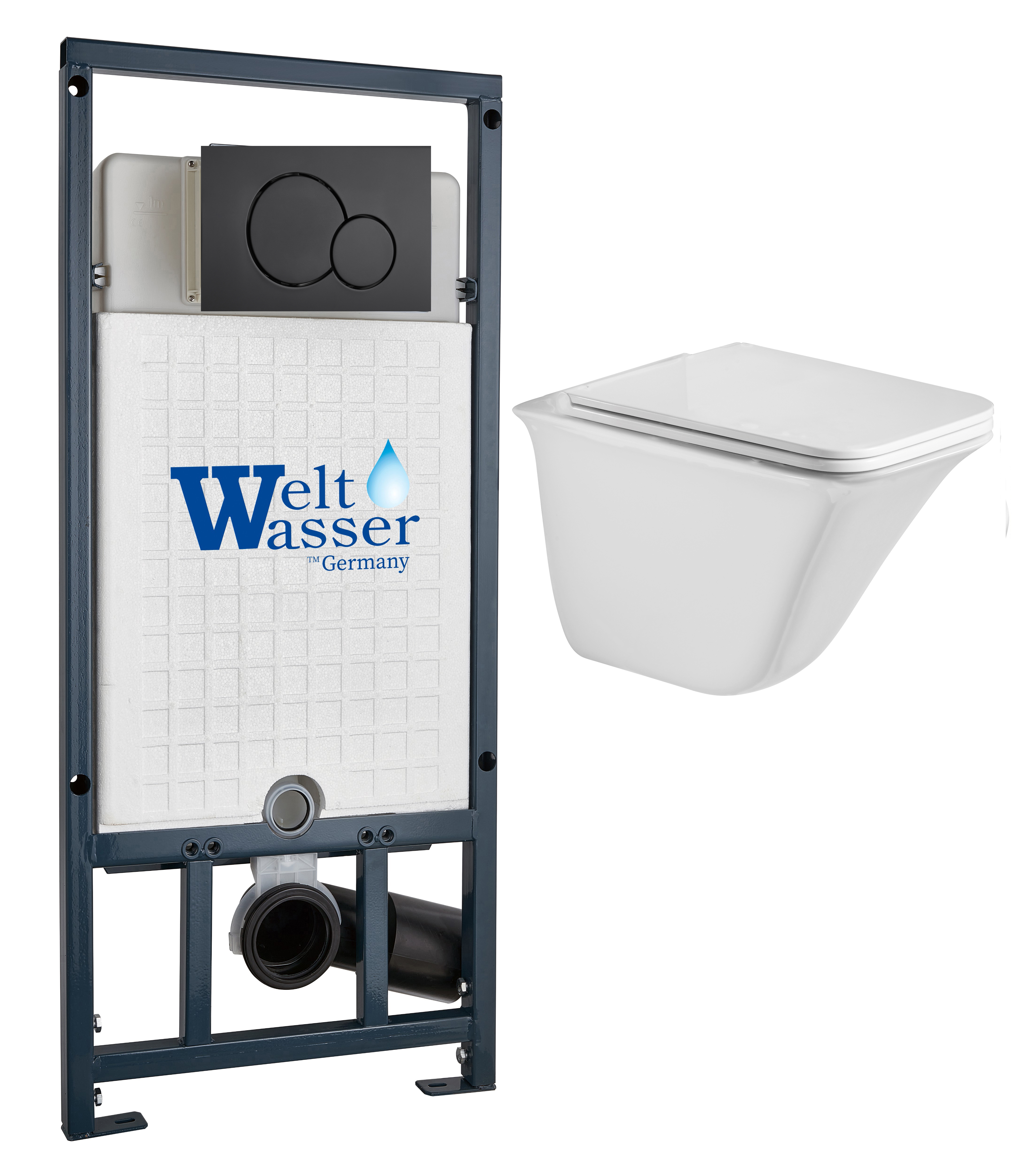 Комплект инсталляции Welt-Wasser MARBERG 507 с унитазом ROTBACH 004 GL-WT и клавишей смыва MAR 507 RD MT-BL черный матовый