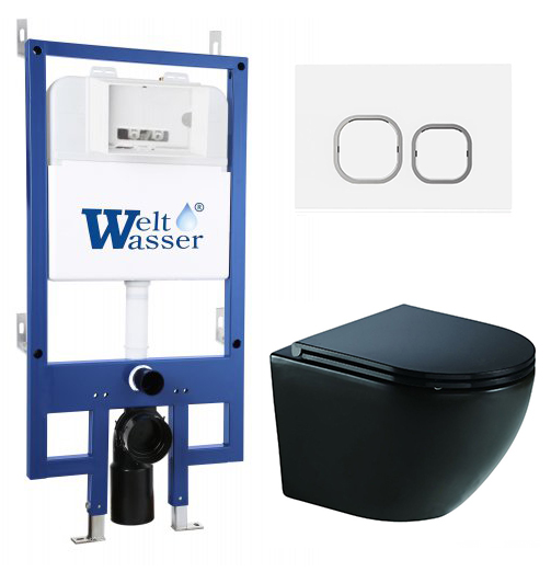 Комплект инсталляции Welt Wasser BAMBERG 545 с клавишей смыва BAMBERG WT и подвесным унитазом MERZBACH 041 XL MT-BL