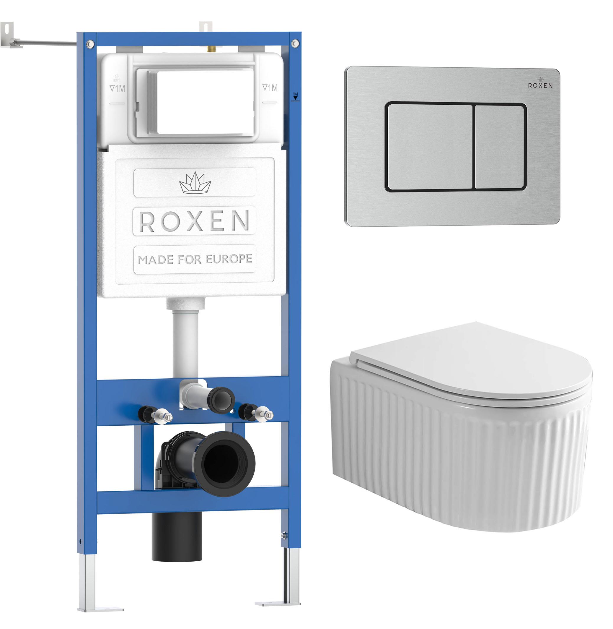 Комплект инсталляция Roxen StounFix Dual Fresh 6 в 1 968301 с унитазом Royal Matt и клавишей смыва Steel 420280S сатин