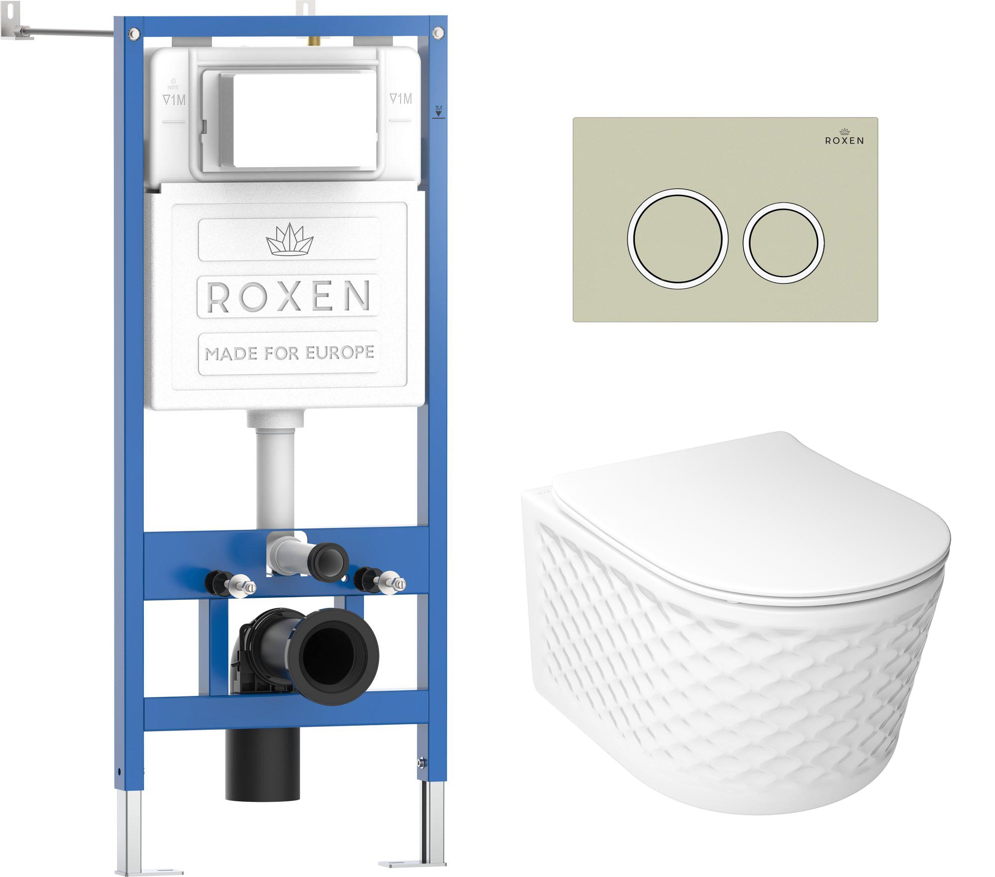 комплект инсталляция roxen stounfix dual fresh 6 в 1 979011 с унитазом vine tornado и клавишей смыва santi 410260m светло-бежевый