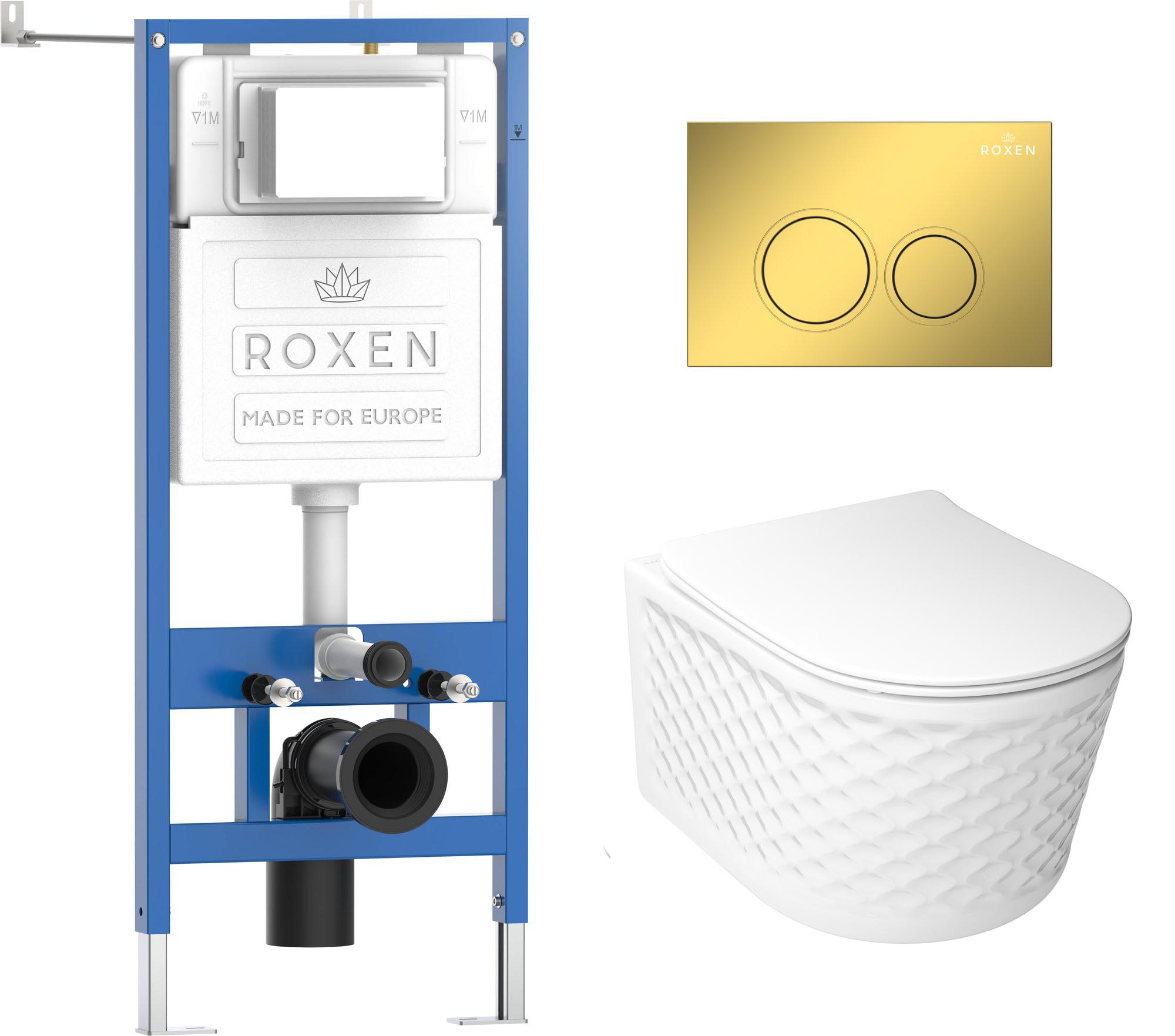 Комплект инсталляция Roxen StounFix Dual Fresh 6 в 1 979013 с унитазом Vine Tornado и клавишей смыва Santi 410260G золото