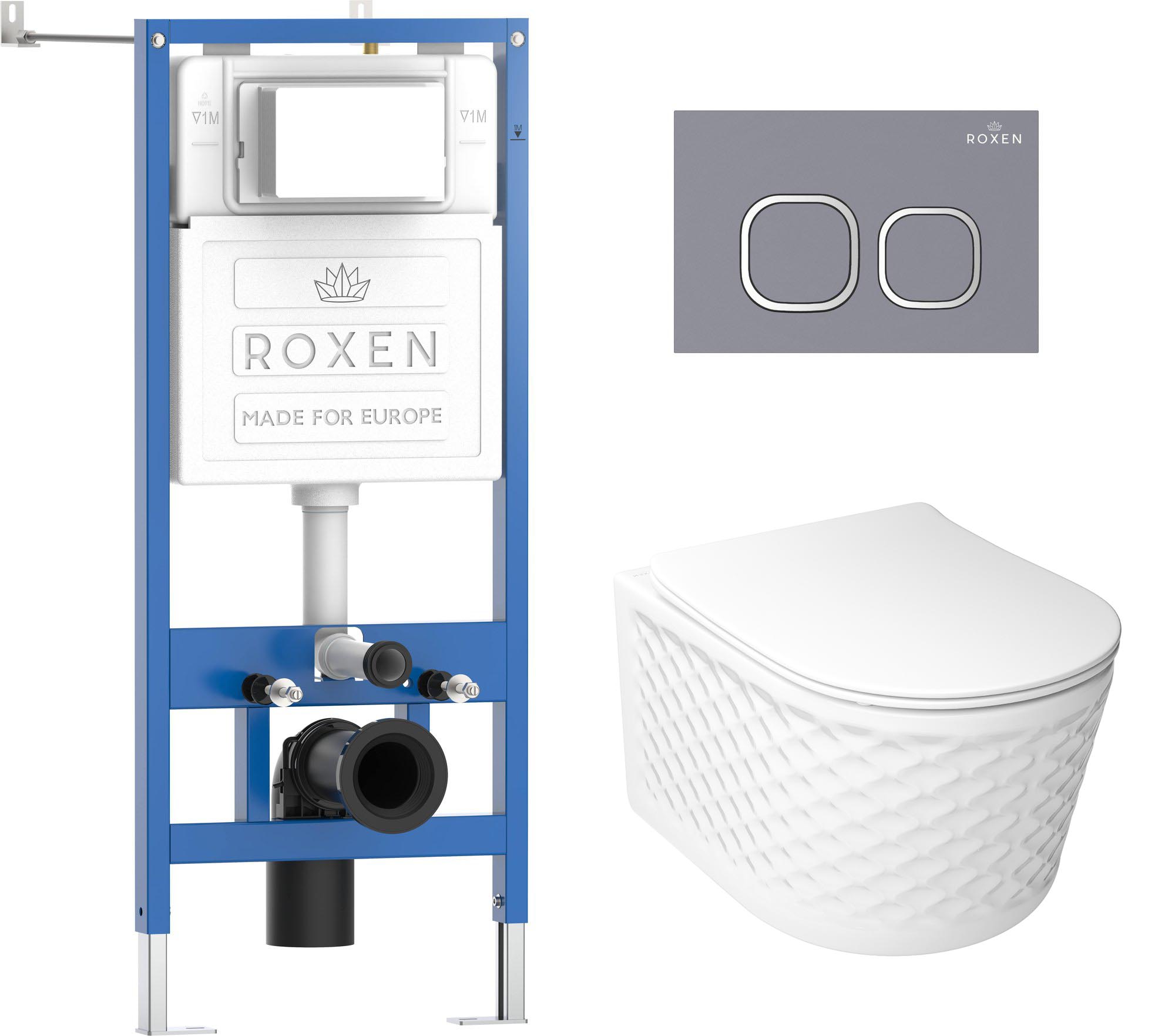 комплект инсталляция roxen stounfix dual fresh 6 в 1 979017 с унитазом vine tornado и клавишей смыва santi 410280m светло-серый