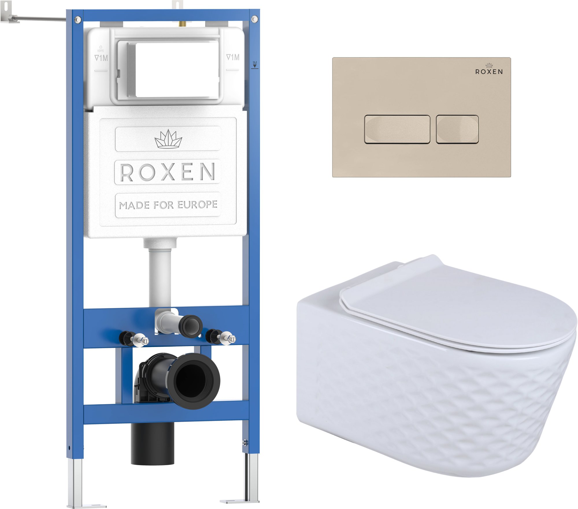 комплект инсталляция roxen stounfix dual fresh 6 в 1 979013 с унитазом vine tornado и клавишей смыва santi 410260g золото