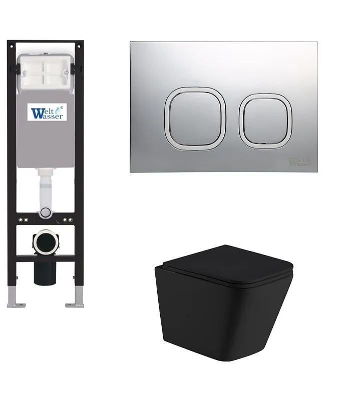Комплект инсталляция Welt-Wasser AMBERG 350 для унитаза GELBACH 043 GL-BL с клавишей смыва AMBERG RD-MT CR