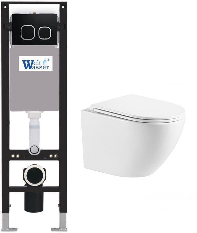 Комплект инсталляция Welt-Wasser AMBERG 350 для унитаза MERZBACH 043 GL-WT с клавишей смыва AMBERG RD-BL, черный матовый