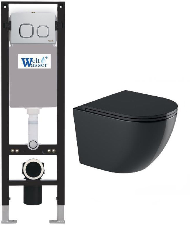 Комплект инсталляция Welt-Wasser AMBERG 350 для унитаза MERZBACH 043 MT-BL с клавишей смыва AMBERG RD-WT, белый