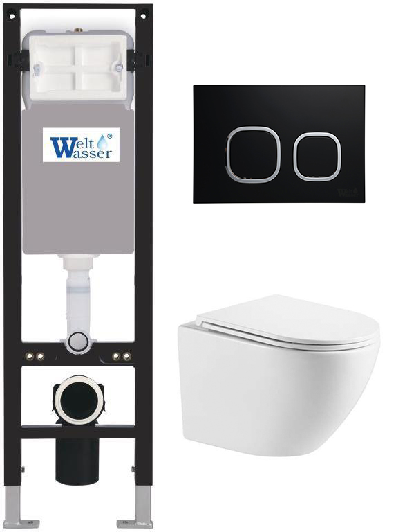 Комплект инсталляция Welt-Wasser AMBERG 350 для унитаза MERZBACH 043 XL GL-WT с клавишей смыва AMBERG RD-BL черный матовый