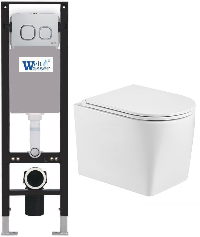 Комплект инсталляция Welt-Wasser AMBERG 350 для унитаза NESENBACH 004 GL-WT с клавишей смыва AMBERG RD-WT, белый