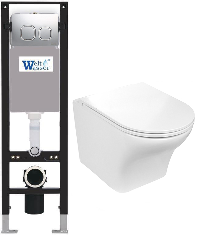 Комплект инсталляция Welt-Wasser AMBERG 350 для унитаза ODENBACH 004 GL-WT с клавишей смыва AMBERG RD-CR, глянцевый хром
