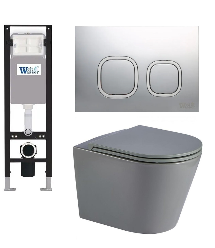 Комплект инсталляция Welt-Wasser AMBERG 350 для унитаза SALZBACH 043 MT-GR с клавишей смыва AMBERG RD-MT CR