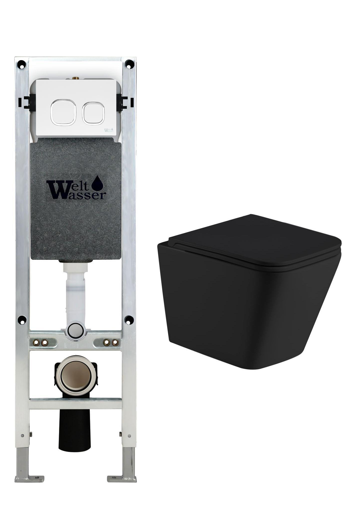 Комплект инсталляция Welt-Wasser AMBERG 350 ST для унитаза GELBACH 043 MT-BL с клавишей смыва AMBERG RD-WT, белый