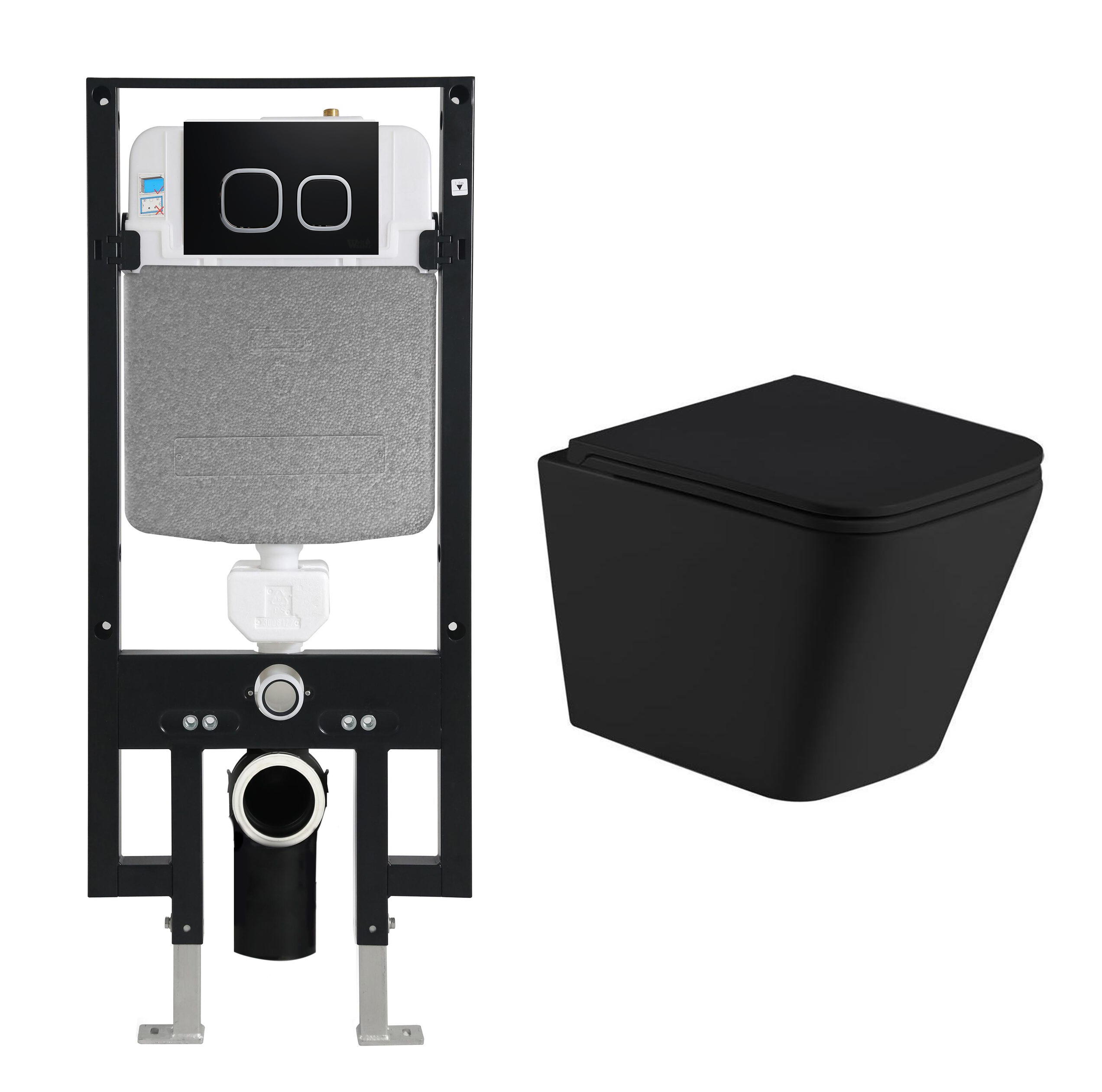 Комплект инсталляция Welt-Wasser AMBERG 497 для унитаза GELBACH 043 MT-BL с клавишей смыва AMBERG RD-BL, черный матовый