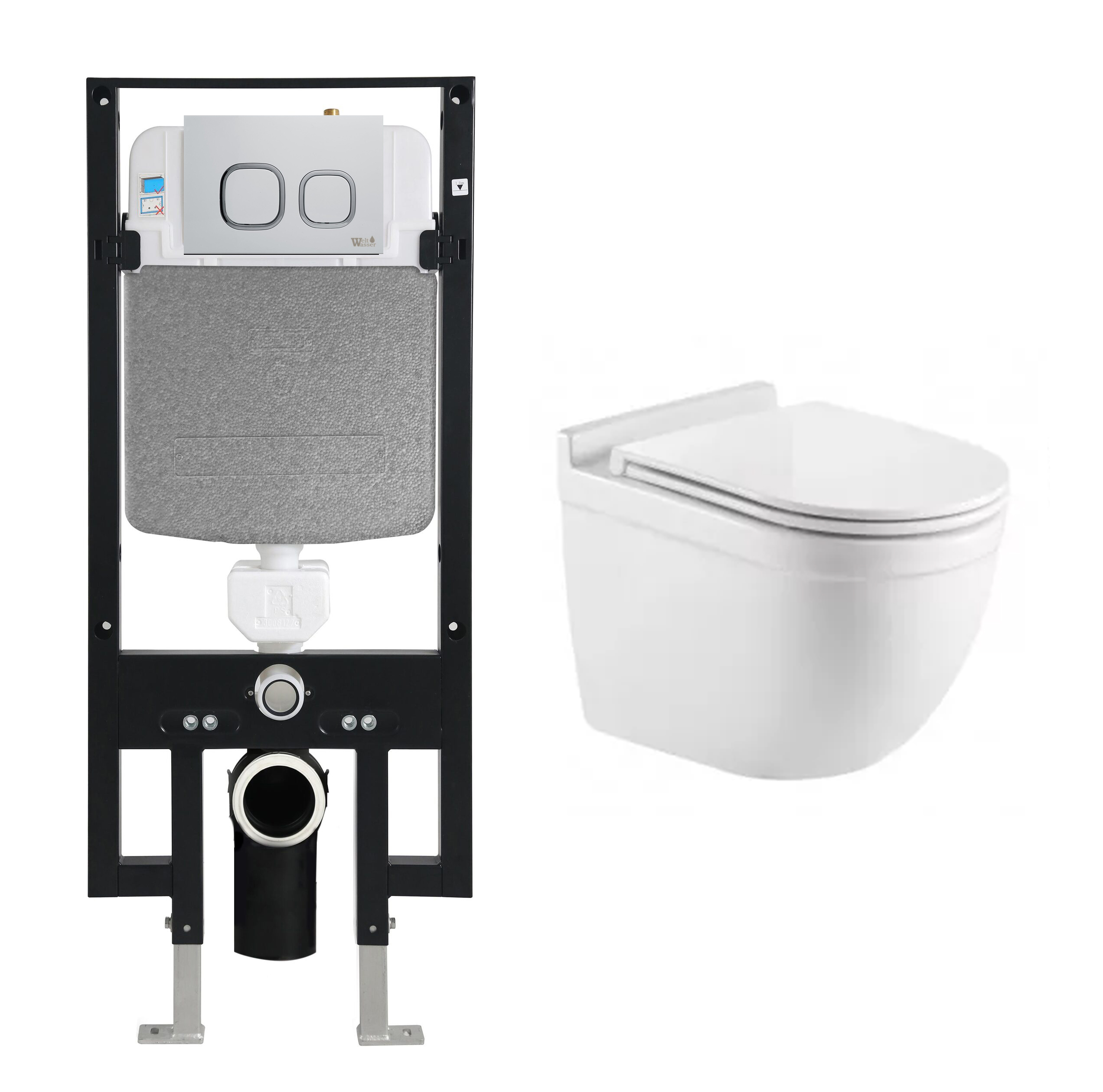 Комплект инсталляция Welt-Wasser AMBERG 497 для унитаза HEIMBACH 043 GL-WT с клавишей смыва AMBERG RD-WT, белый
