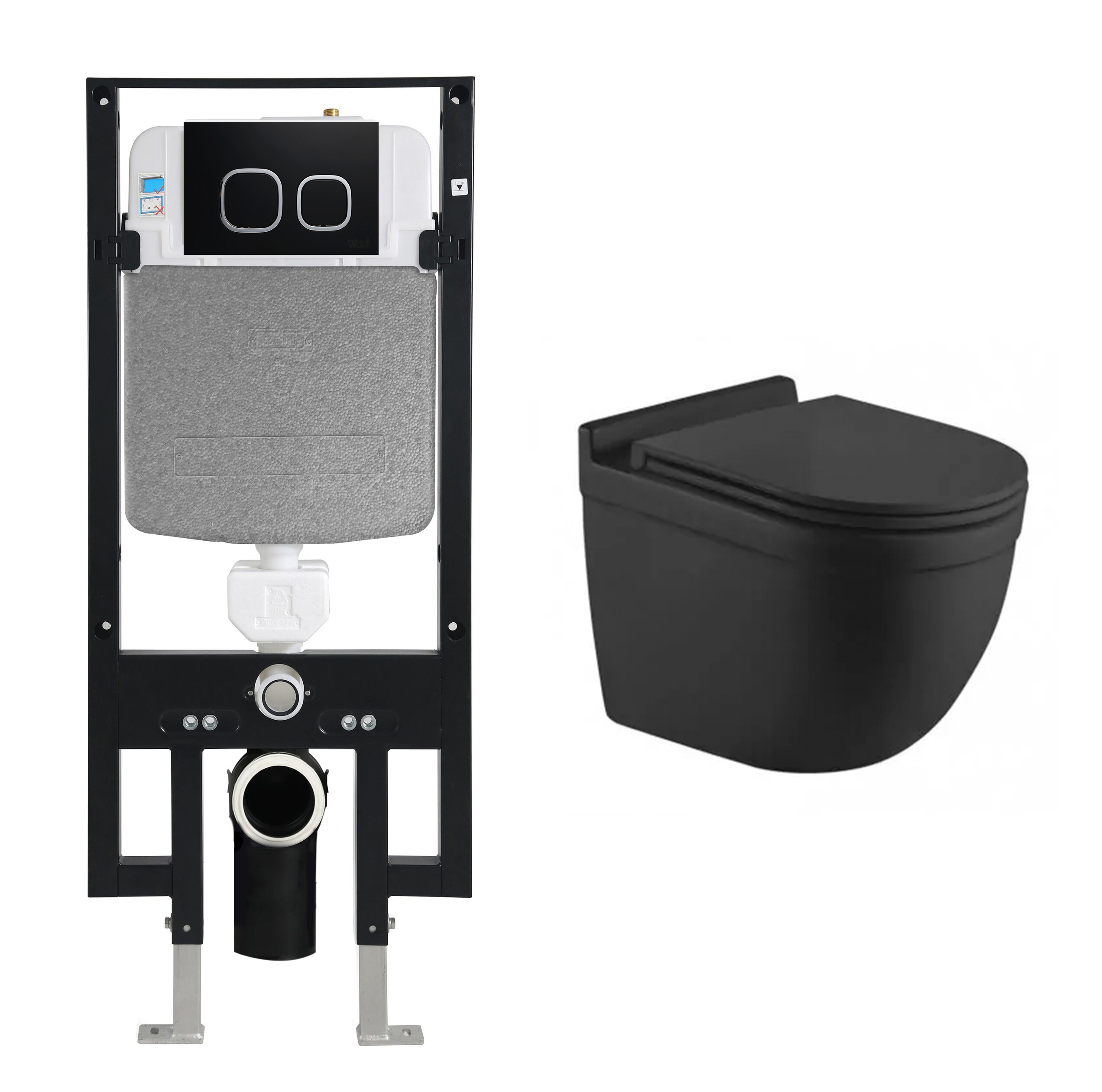 Комплект инсталляция Welt-Wasser AMBERG 497 для унитаза HEIMBACH 043 MT-BL с клавишей смыва AMBERG RD-BL, черный матовый