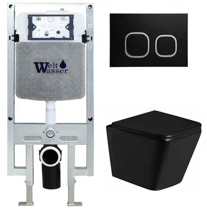 Комплект инсталляция Welt-Wasser AMBERG 497 ST для унитаза GELBACH 043 GL-BL с клавишей смыва AMBERG RD-BL