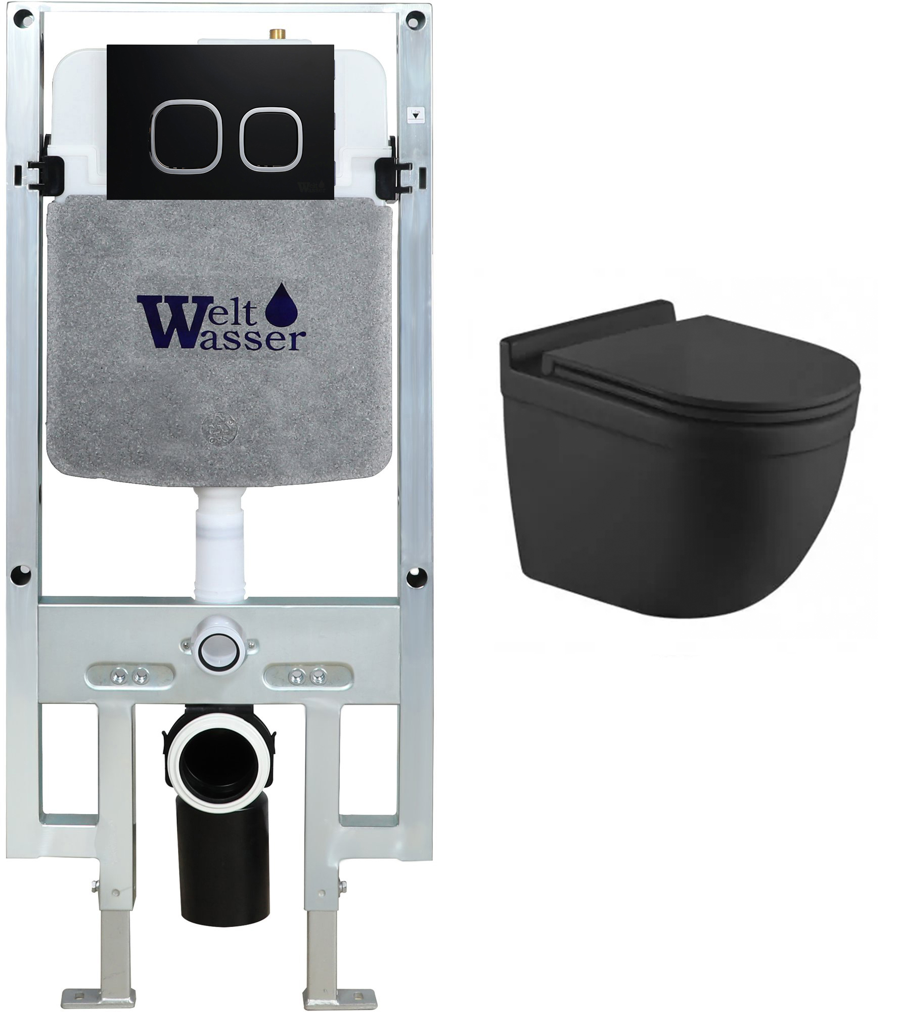 Комплект инсталляция Welt-Wasser AMBERG 497 ST для унитаза HEIMBACH 043 MT-BL с клавишей смыва AMBERG RD-BL, черный матовый