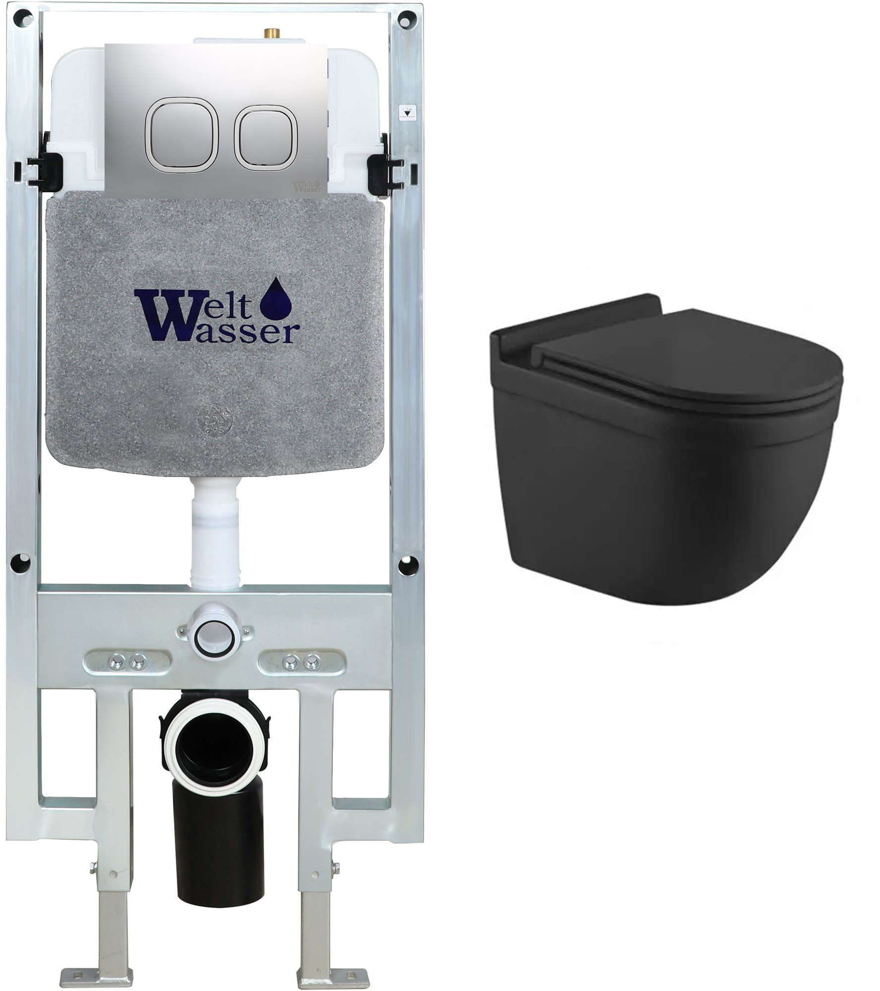Комплект инсталляция Welt-Wasser AMBERG 497 ST для унитаза HEIMBACH 043 MT-BL с клавишей смыва AMBERG RD-CR, глянцевый хром