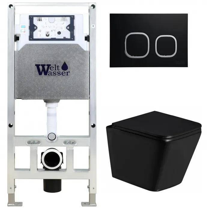Комплект инсталляция Welt-Wasser AMBERG 506 ST для унитаза GELBACH 043 GL-BL с клавишей смыва AMBERG RD-BL