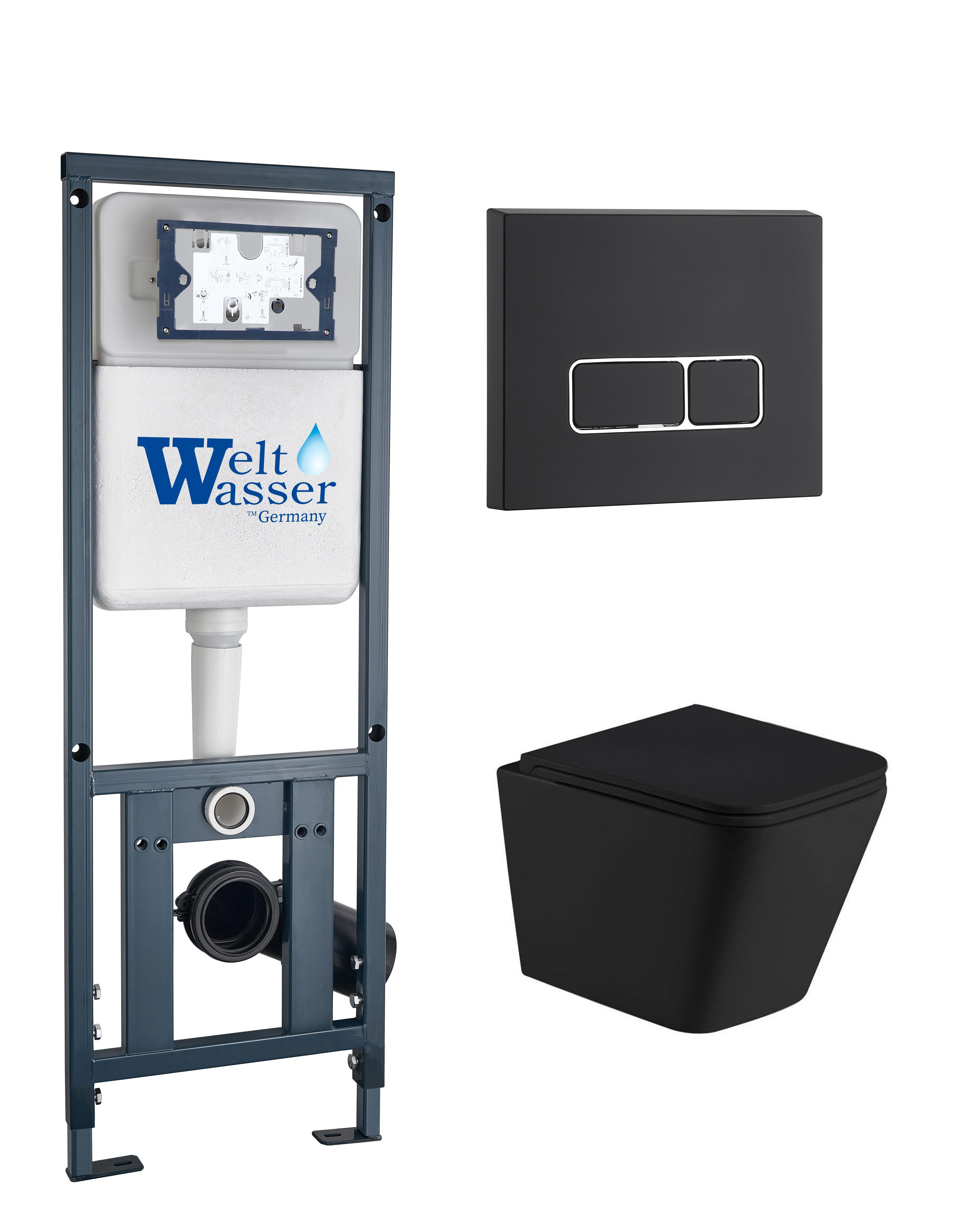 Комплект инсталляция Welt-Wasser MARBERG 410 для унитаза GELBACH 043 MT-BL с клавишей смыва MAR 410 SE MT-BL