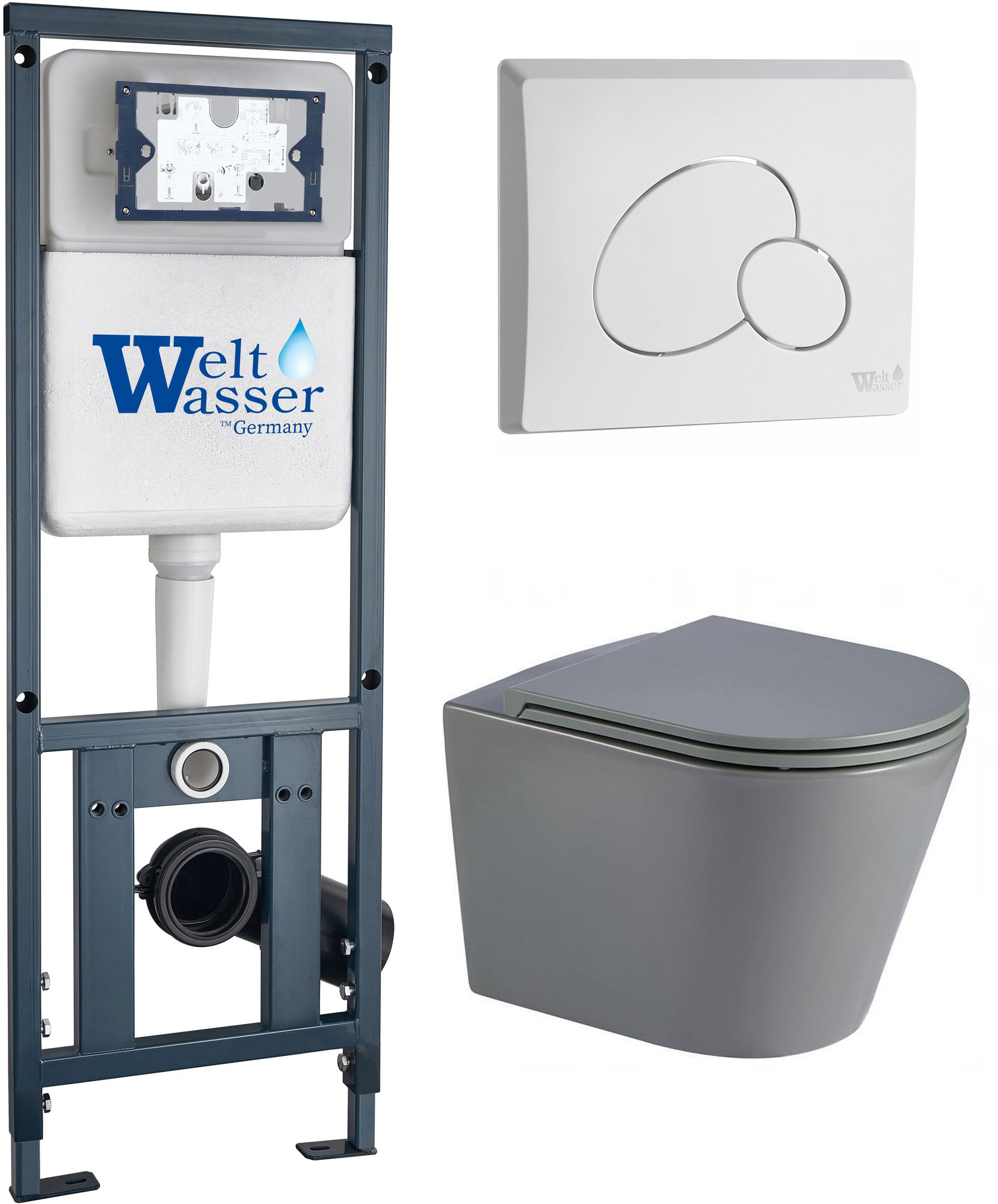 Комплект инсталляция Welt-Wasser MARBERG 410 для унитаза SALZBACH 043 MT-GR с клавишей смыва MAR 410 RD GL-WT