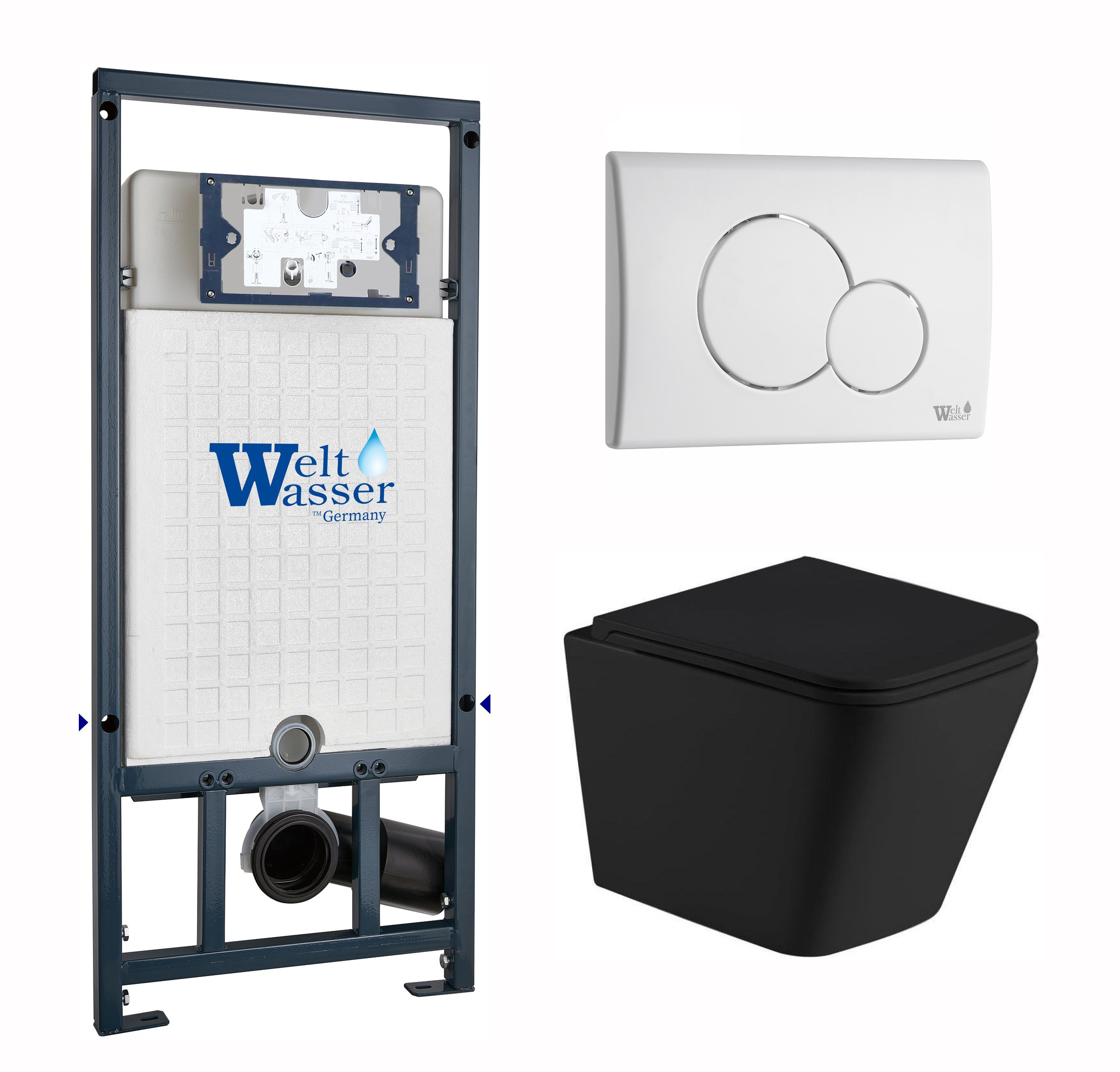 Комплект инсталляция Welt-Wasser MARBERG 507 для унитаза GELBACH 043 GL-BL с клавишей смыва MAR 507 RD GL-WT