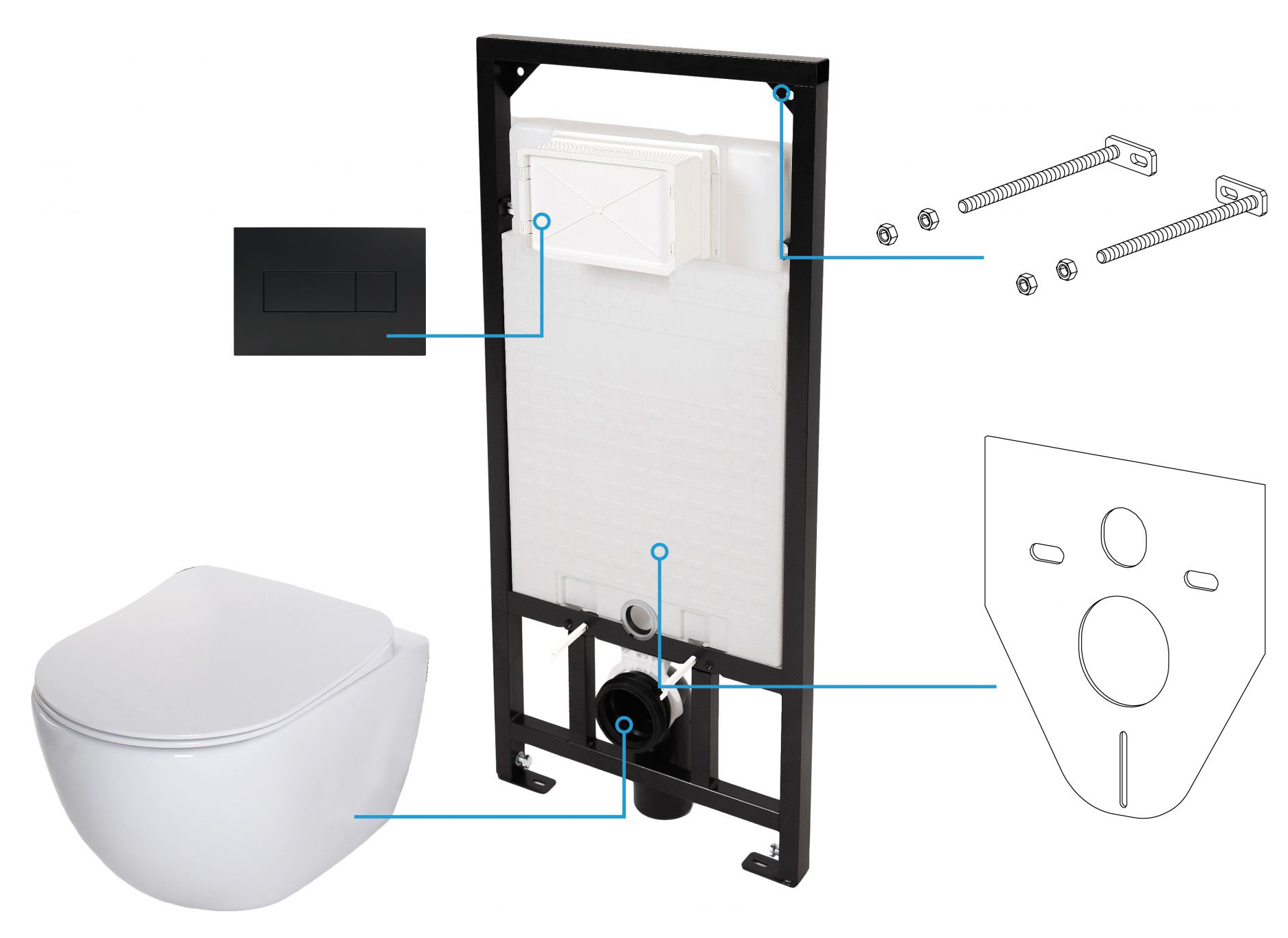 комплект amore di mare 6 в 1 quickfit 50114 с клавишей смыва 404mb черный матовый и подвесным унитазом tassaro p202Код: 193643