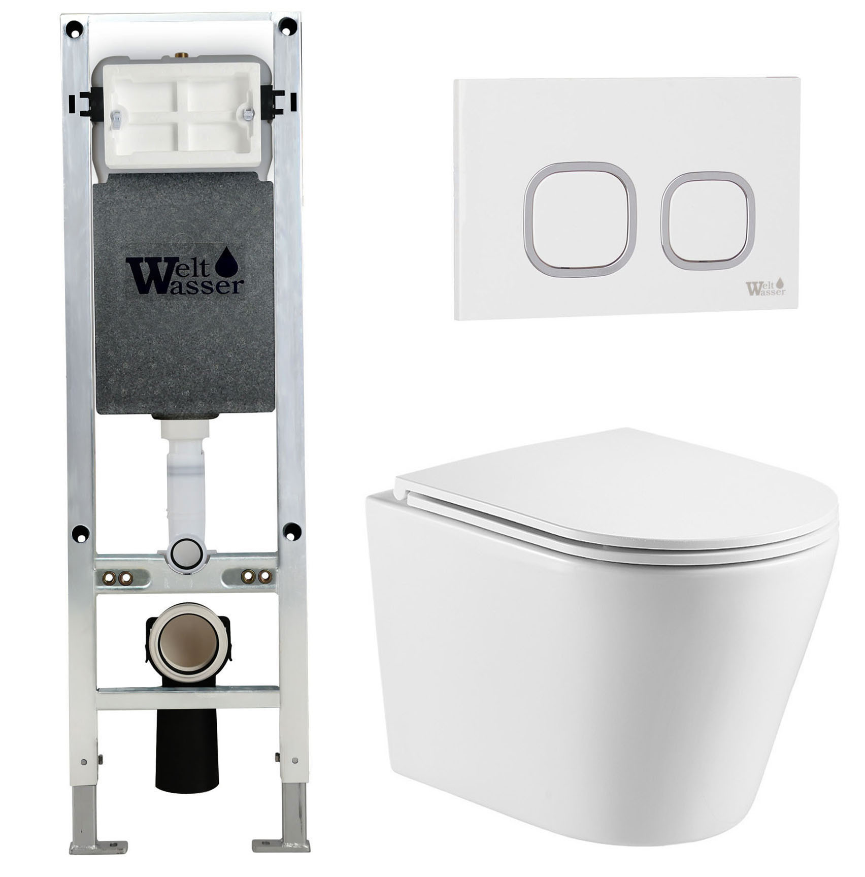 Комплект Welt-Wasser AMBERG 350 ST + SALZBACH 043 GL-WT + AMBERG RD-WT с белой клавишей