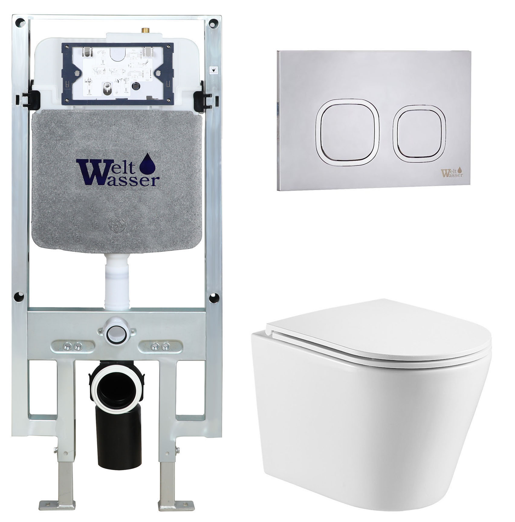 Комплект Welt-Wasser AMBERG 497 ST + SALZBACH 043 GL-WT + AMBERG RD-MT CR с клавишей хром матовый