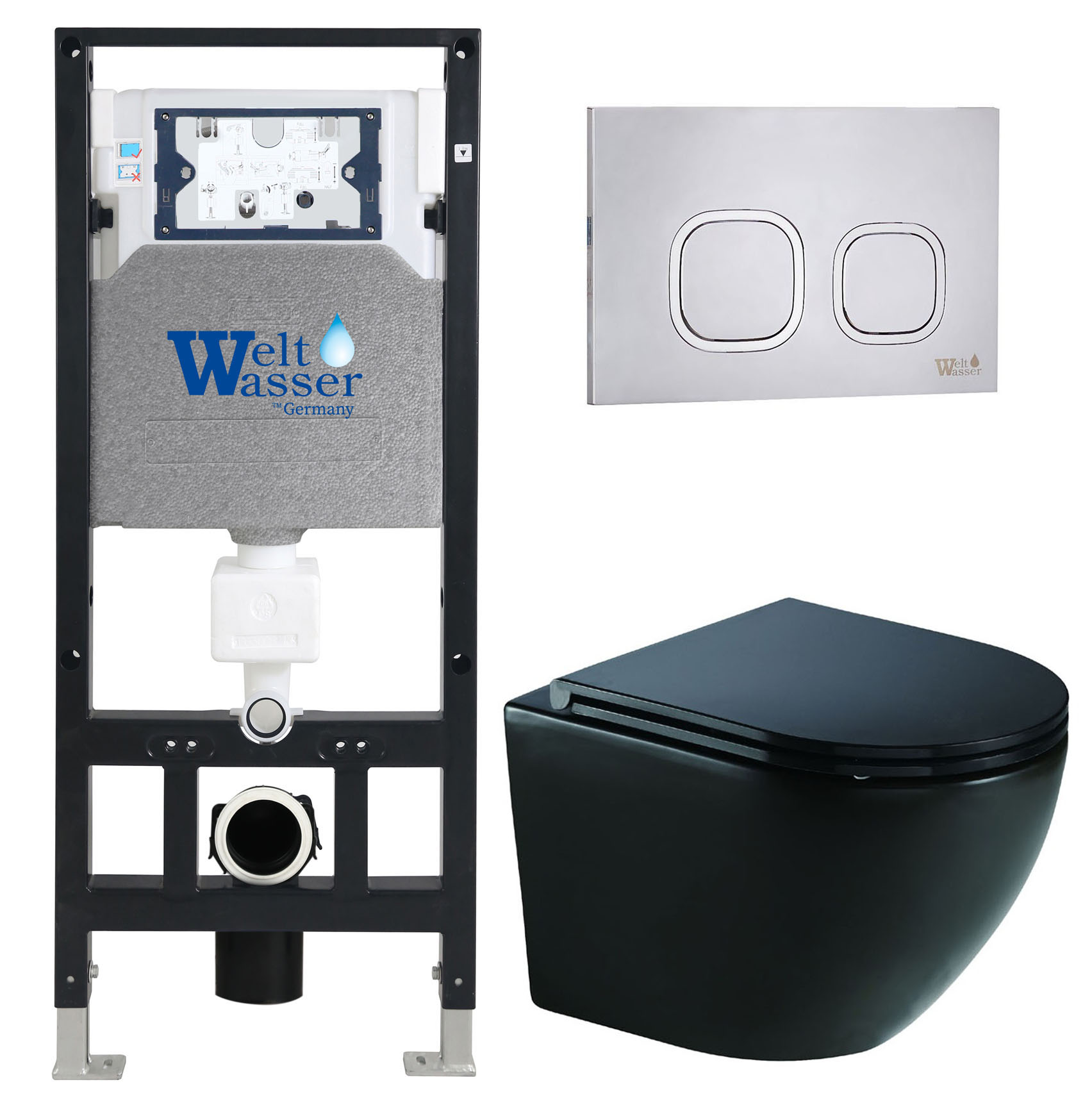 Комплект Welt-Wasser AMBERG 506 + MERZBACH 041 XL MT-BL + AMBERG RD-MT CR с клавишей хром матовый