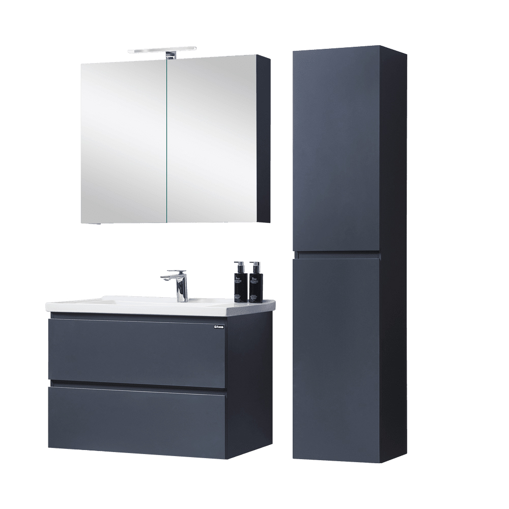 Комплект мебели Orans BC-4023-800 (тумба с умывальником, шкаф с зеркалом и пенал) графитовый матовый