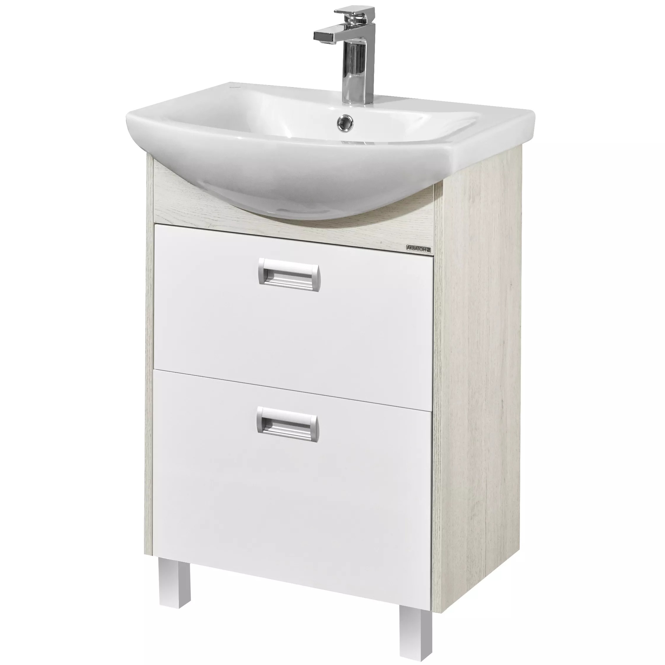тумба подвесная/напольная акватон сканди doors 55 белый глянец / дуб верона с умывальником santek адриана 55