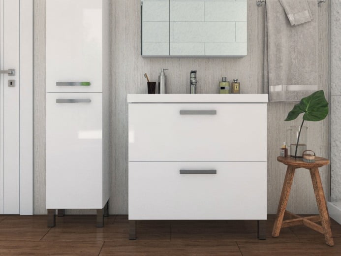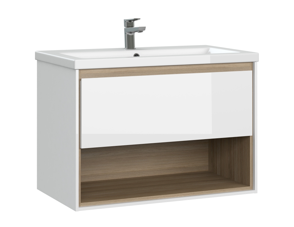тумба с умывальником cersanit moduo slim 79,4x37,5 подвесная белая (умывальник moduo 80 slim)