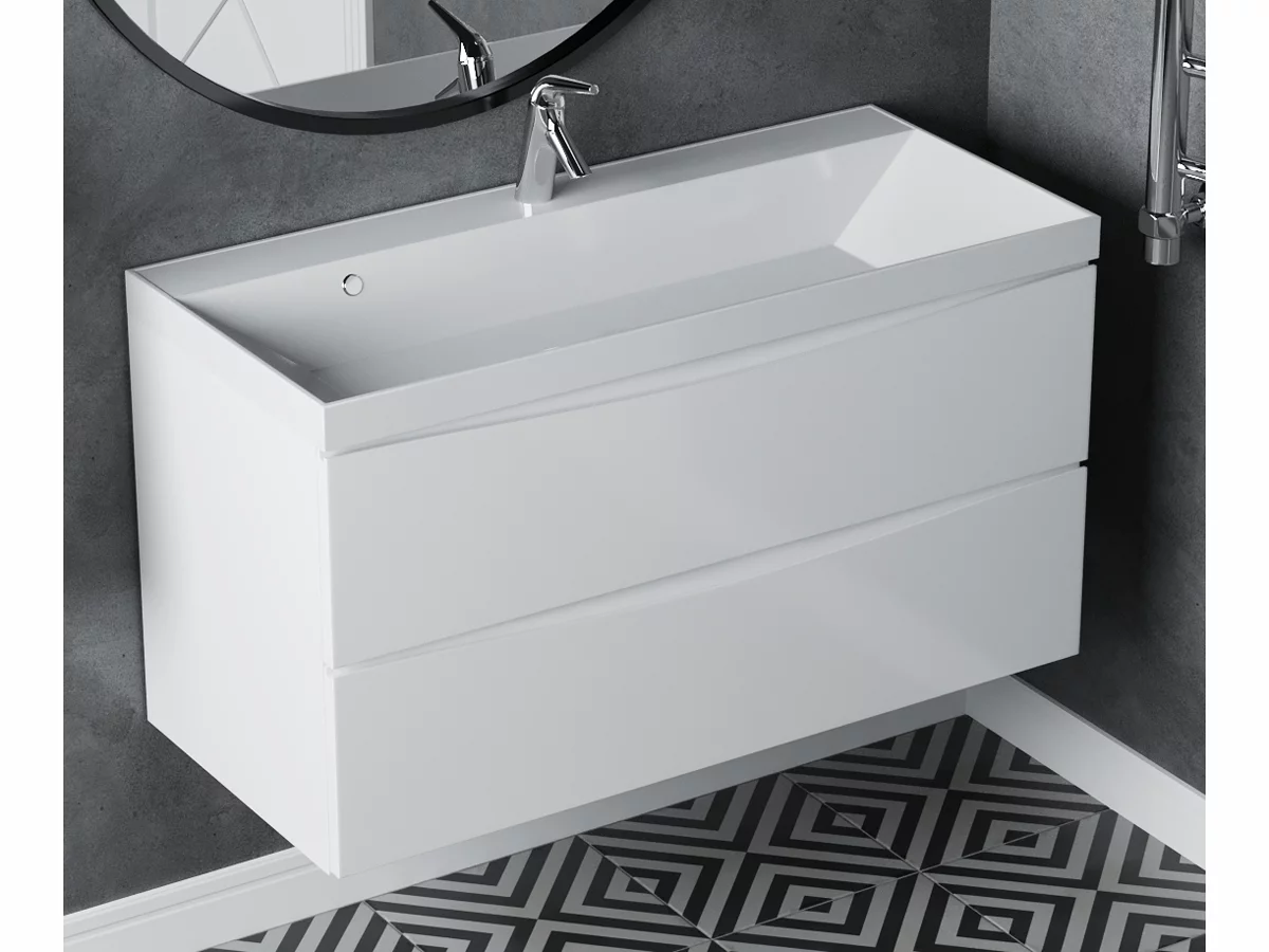 тумба под умывальник подвесная vela бланка 100п 4 ящика черный матовый (открывание нажатием)