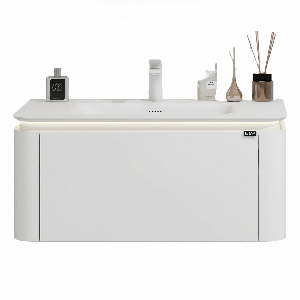 тумба с умывальником и столешницей black&white universe u915.1200l glossy light grey (левая)