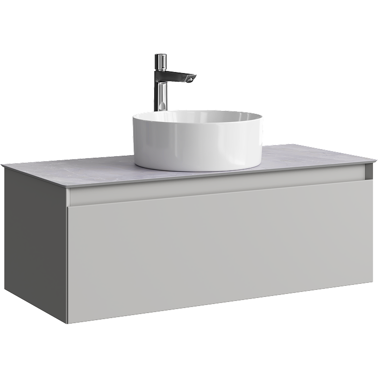 Тумба Aqwella Geometria 100x46 светло-серый, со столешницей из керамогранита, серый камень