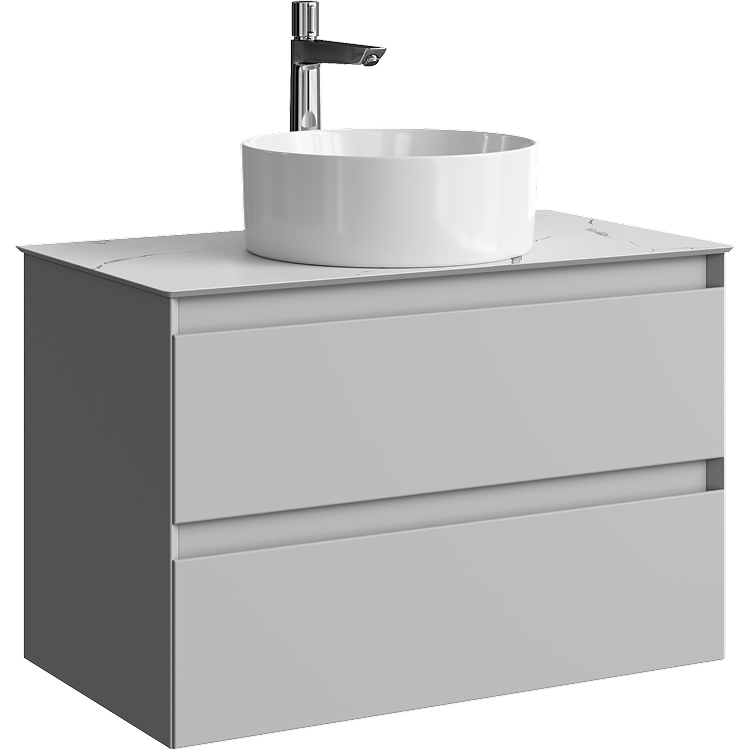 Тумба Aqwella Geometria 81x48 светло-серый, со столешницей из керамогранита белый мрамор