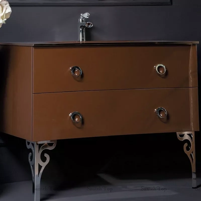 и насыщенный цвет, но и позволяющий изделиям служить долгое время несмотря на влажную среду.). Дно ящиков отделано эко-кожей с фирменным стежком Antonio Valanti. Столешницы выполнены как из керамики и каленого стекла, так и материала Solid Glass®, в состав которого входит мраморная крошка и стекло, материал чрезвычайно прочен, не оставляет следов царапин и обладает неповторимой глубиной цвета. Эксклюзивная линейка раковин данной коллекции вряд ли оставит равнодушными даже самых притязательных клиентов. Некоторые из них производятся по оригинальным лекалам из материала Corian®, другие из чистейшего горного хрусталя, с оптимальным содержанием окиси свинца (PbO), не менее 24%. Произведенные