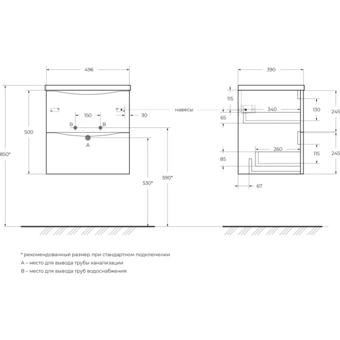 Тумба подвесная Belbagno MARINO-CER-MINI-500-2C-SO-RNG-P серый дуб натуральный