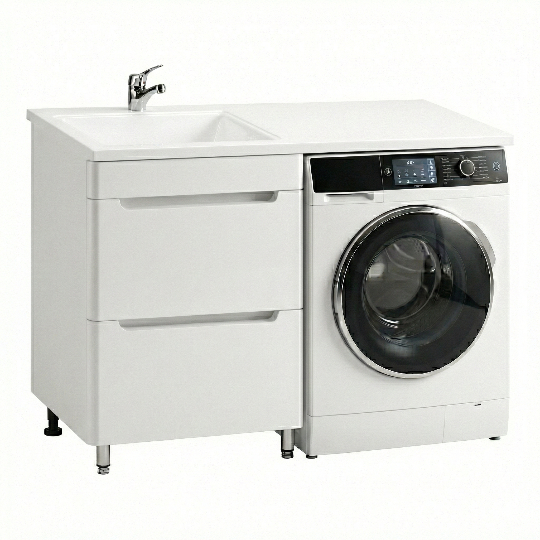 Тумба под умывальник Vako Волга 2 ящика Марсал 120 левая, белая