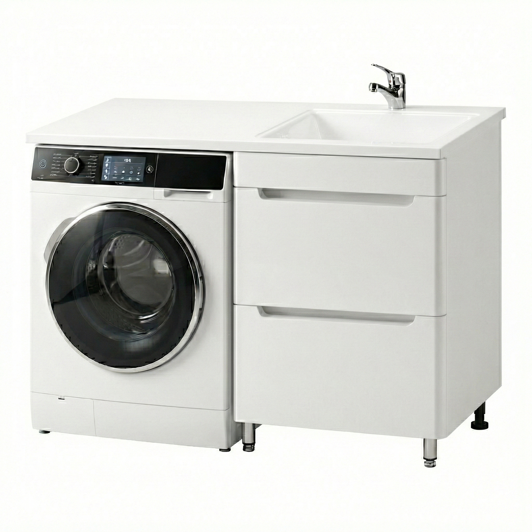 Тумба под умывальник Vako Волга 2 ящика Марсал 120 правая, белая