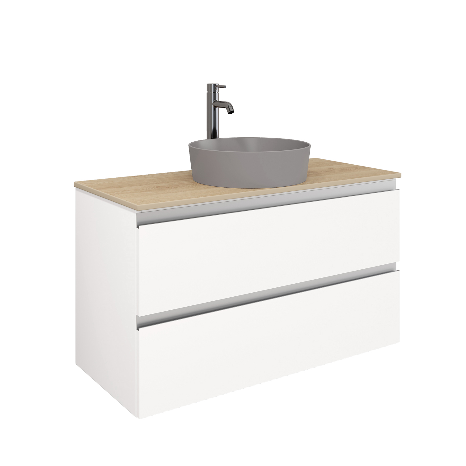 Тумба подвесная Laparet ELECTRA 120 со столешницей, УЛЬТРА белый глянец/дуб Каселла